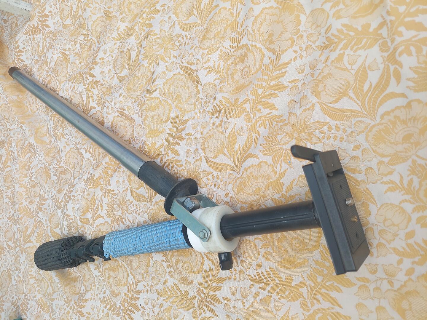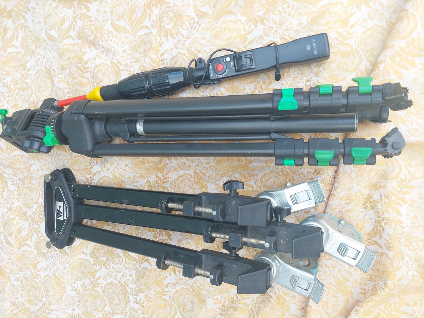Sprzedam masywny mocny statyw ze sterownikiem i wózkiem do kamery czy też do aparatu fotograficznego do tego dokładam stabilizator uniwersalny z szybko złączką również rozkładany do 160 cm posiada specjalny obciążnik pomagający w stabilizacji obrazu w czasie chodzenia bądż po jednym dotknięciem i rozsunięciu służy jako podpora ( kurza nóżka )