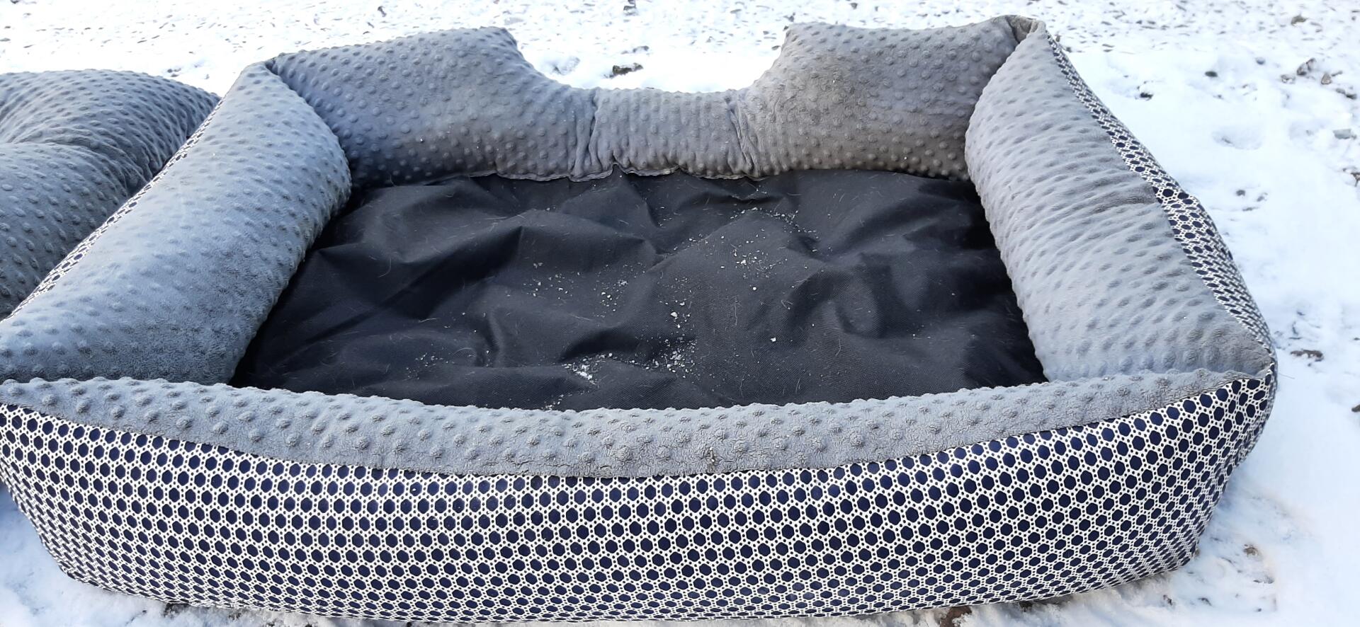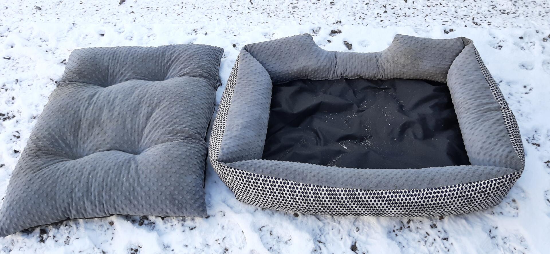 Legowisko jest w super stanie składa się z dwóch części z miękkiego obrzeża oraz z miękkiego materaca