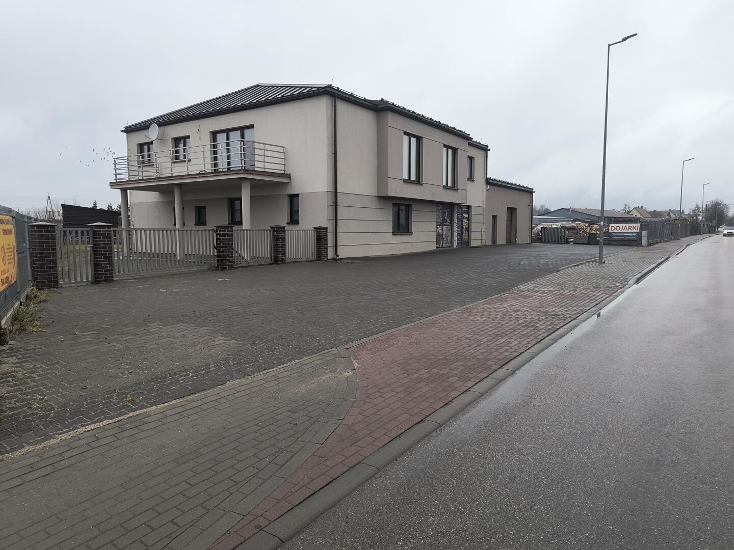 Parter: sklep 130m2, magazyn 136m2, pomieszczenia biurowe, warsztat, pom. socjalne, łazienka - łącznie ok 86m2.